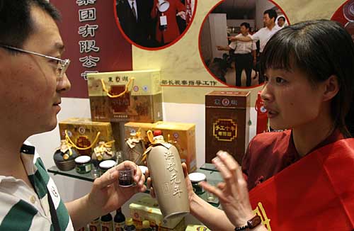 6月6日,由山西省政府信用山西建設領導組舉辦的“首屆山西品牌節”在中國煤炭博物館亮相。在展示廳一服務員向顧客介紹山西千年老陳醋品牌。