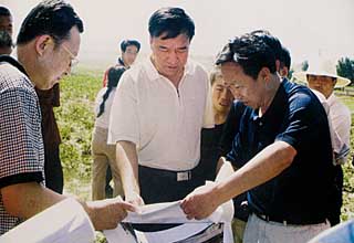 區長李俊(中)在白堂鄉就農村建設進行調研 |
