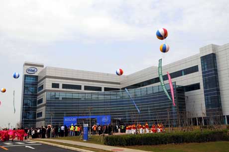 這是4月28日拍攝的英特爾大連芯片廠綜合辦公大樓落成典禮現場。 當日,英特爾大連芯片廠(FAB68)綜合辦公大樓在遼寧大連開發區投入使用。英特爾大連芯片廠是英特爾公司在全球的第8個、亞洲的第1個300毫米晶圓廠,投資總額達到25億美元,按計劃將于2010年正式投產。這個廠的總使用面積達16.3萬平方米,內含1.5萬平方米的無塵室,計劃采用英特爾最先進的納米制程工藝,并配合全球主流的300毫米晶圓技術,成為英特爾在全球芯片生產網絡的重要組成部分。