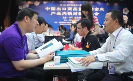 5月6日,外貿企業代表和國內采購商在進行洽談。