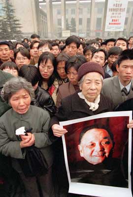 鄧小平追悼會那天,革命歷史博物館前聚集很多人