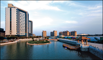 從北京天安門沿長安街驅車向東,即可到達潮白河畔。遠遠望去,緊鄰河畔的一座座高樓拔地而起,燕達國際健康城清晰可見。作為大型國際醫療健康產業項目,燕達國際健康城以“世界級的醫療服務、世界級的健康生活”為愿景,構筑了一個涵蓋國際醫療、健康養護、健康管理、醫療科研、醫療教育、醫療國際交流等諸多領域的“大健康產業”。 歷時五年打造的燕達國際健康城將于2010年6月盛大揭幕。項目總投資100億元人民幣,占地面積50萬平方米(不含附屬用地),總建筑面積110萬平方米。燕達國際醫院擁有四座總計25萬平方米住院樓,一座7萬平方米的康復樓,一座5萬平方米的門診樓以及一座6萬平方米的醫技樓,總醫療面積43萬平方米。設置醫療床位2000張,康復床位1000張。國際健康養護中心總建筑面積60萬平方米,設置床位12000張。 燕達國際健康城由五大板塊構成:國際醫院、金色年華健康養護中心、國際醫學研究院、國際醫護培訓學院、國際會議中心。五大板塊相互獨立又互為補充和促進。在自然景觀布局上,通過一條總面積近4萬余平方米的水系帶狀公園,將健康城自然地分隔為燕達國際醫院和金色年華健康養護中心兩大部分。健康城綠化率高達38%,園區內各個景觀相互交融、相映生輝,形成了小橋流水、亭臺軒榭、花鳥樹木、游船雕塑,動靜相宜的特色美景。