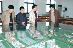 靜?h委書記孫文魁(右一)及副縣長陳顏忠(左一)和唐官屯鎮黨委書記趙強(右二)、鎮長趙洪軍(右三)共同研究唐官屯物流園規劃。 |