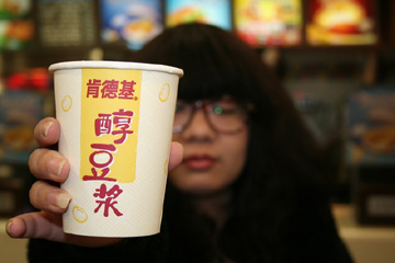 3月29日起,當你走進肯德基餐廳,看到“醇豆漿”香氣四溢時,不要以為走錯了地方。這位新快餐倡導者又一次讓人驚訝,大張旗鼓地把中國人最傳統的飲品擺上了洋快餐的餐桌上。至此,“辣堡+豆漿”的神奇組合不再是幻想。