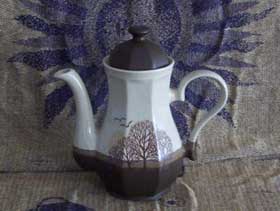 可我沒有找到與它們相配的茶壺,肯定當初是有茶壺的,也許正是因為茶壺的離去,才使得它們落到了基督教的二手店里?后來我找到了一把韓國制的茶壺,比起這幾個杯子來,顯然是精致多了。它有優雅的線條和我喜歡的那種穩重的顏色,我最喜歡的還是上面的繪畫,就那么簡單的幾筆,就畫出了美麗的意境來。雖然和杯子不配套,但我還是買了下來。五新西蘭元,貴族的價格。