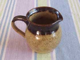 在一片壇壇罐罐中我發現了一個小奶罐,這是個淺褐色帶有米粒點的小奶罐,造型拙樸,矮矮胖胖的,好像單手叉腰的牧場老奶奶。奶罐的邊緣部分上了很濃的深褐色的釉,看起來很有裝飾效果。我買了下來,一新西蘭元,F在,只要有客人來,我都會用這小奶罐來招待咖啡和紅茶,很有鄉村的味道?晌疫是很喜歡我前面看到的那張桌子。但我下次再去的時候,已經沒有了?梢,和我的審美習慣一樣的人還真不少呢。