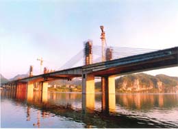 橫跨柳江的三門江大橋全長4.3公里,總投資3.4億元,為雙塔雙索面斜拉橋。承建該橋的中鐵四局集團開展了多項科技攻關,確保工程安全質量。大橋預計年底通車,將有力促進西南地區的經濟發展。