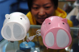 日前,在江蘇無錫一家商城,一位女孩被小豬造型的收音機所吸引。這種小豬造型的收音機不僅能收聽廣播,還可與MP3、MP4播放器或電腦等設備連接,作為音箱使用,受到年輕人喜愛。