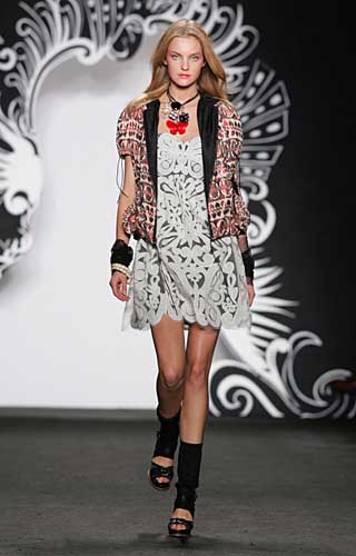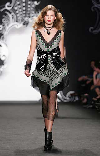 表面上仿如鄰家女孩的乖巧風格,其實充斥著顛覆傳統的設計元素,這就是安娜蘇的春夏系列服飾。 盡管設計師本人在這一季更為偏愛黑色、白色與紅色,但那些時尚元素頗強的深藍色、翠綠色、藍紫色、杜松色、藍莓色、水藍色、淡紫色、白金色和金色也并未被完全遺忘。 材質的選擇上,安娜蘇依舊出手不凡,布料混合著纖密的蕾絲、人造亮漆布、金屬編織粗尼、荷葉邊裝飾的細薄棉布、亞麻刺繡底布和毛織衣料……一應俱全。 至于輪廓,這一季安娜蘇在極力體現著輕短而豐滿的身型效果,摒棄了僵硬的架構,展現著洛可可時期的剪裁與制作。身型方面,有娃娃型洋裝、雞尾酒小禮服、無袖涼衫、家居洋裝、無袖連衣裙、緊身連衣女裝和蘇格蘭式短裙。 與以往相同,安娜蘇的作品具有極強的迷惑力,無論服裝、配件還是彩妝,都能讓人感覺到一種搶眼的、近乎妖艷的色彩震撼。她最擅長從紛亂的藝術形態中尋找靈感。在崇尚簡約主義的今天,安娜蘇逆潮流而上,設計中充滿濃濃的復古色彩和絢麗奢華的氣息。事實上,安娜蘇服裝盡管華麗但從不失實用性,它可以讓時尚的都市女性發揮自己的無限創意,隨心組合,以展現獨特的個性魅力。