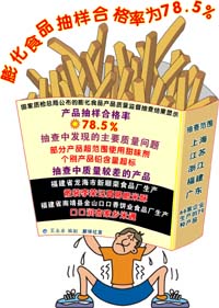 質檢總局提醒消費者在購買膨化食品時要注意以下問題: 選購時應注意:1、選品牌。優先在正規的大型商場、超市中購買知名品牌的產品。2、看標識。選購時最好選購有預包裝的產品并注意產品的標簽標識。因膨化食品油脂含量一般較高,如果保存不當,受高溫和高濕度的影響,易造成產品變質,所以在購買時特別注意產品的生產日期,選擇保質期內的產品,最好是近期生產的產品。 食用時應注意:1、品嘗感官。打開包裝聞一下產品的氣味是否正常,應沒有刺鼻的哈喇味,外觀沒有霉變,口感應松脆。2、不宜長期過多食用。長期大量食用此類食品會造成油脂、熱量大量攝入,易造成人體脂肪積累。3、對于糖類攝入不宜過多的人群或高血壓病人,應謹慎選擇此類食品。4、少年兒童正處于身體發育階段,更要注意合理膳食、均衡營養。如果在飯前大量進食此類食品,容易造成飽脹感,影響正常進餐,妨礙身體對營養物質的吸收。 |