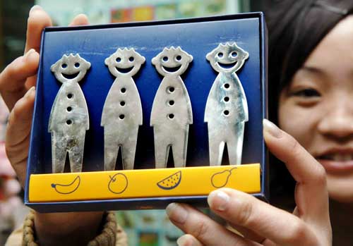 近日,一系列另類造型的餐具亮相銀川,卡通的煎鍋、人形的刀叉、扭曲的湯勺等,為單調的廚房增添了不少情趣。