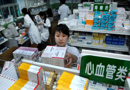 今年最大規模的西藥降價將在月中來臨。國家發改委下發通知,從5月15日起,調整260個品種的西藥最高零售價格,其中70%下調,平均降價幅度為19%,降價金額約50億元。圖為銀川市第一人民醫院西藥房工作人員正在整理藥品貨架為降價作準備。
