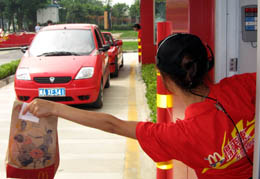 當天,四川首家汽車快餐店亮相成都,車主無需停車即可購買到快餐食品,極大地方便了開車的顧客。成都是我國私家車第三家,汽車保有量60余萬輛,其中私家車50余萬輛。