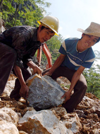 2007年8月7日,廣西平果縣果化鎮東孟村龍林屯農民阮光明和阮廷克在建筑村級道路路基。