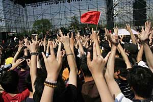 | 與一幫志趣相投的搖滾樂迷一同演奏、一同參加音樂節,成為了一些中年人業余生活的新亮點。本報資料照片 | 提起中年人,人們多數時候會把他們和沉穩、老練甚至是大腹便便聯系起來,搖滾、街舞、PSP、COSPLAY這些時尚代碼似乎不可能與中年人為伍,然而種種跡象表明,這樣的判斷已經太過保守,中年人正與時尚牽手演繹他們精彩的“后青春時代”。