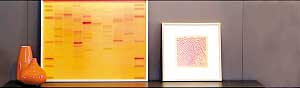 DNA技術一直被廣泛應用于醫學鑒定和刑事偵察,現在它又成為藝術家們的新寵。加拿大“DNA11”公司就是浪潮引領者之一,由阿德里安·薩拉穆諾維奇和納齊姆·艾哈邁德創始。公司推出的DNA繪圖展現出明快的顏色和抽象的線條,與現代藝術潮流不謀而合,頗受顧客青睞。 創建于2005年的“DNA11”是一家網絡公司,總部設在加拿大。根據公司網站介紹,數字“11”既代表DNA的雙螺旋結構,又象征DNA繪畫的平衡感與簡潔風格。 據英國《獨立報》報道,“DNA11”的構思顛覆了傳統的繪畫模式。肖像模特不必再久坐不動,保持一種表情和姿勢直到肌肉僵硬。想得到自己DNA繪畫的顧客只需把一個棉球含入口,蘸取少許唾液樣本,然后把樣本送往加拿大總部,一幅“DNA肖像”隨后便可繪制完成。 “DNA11”的顧客可根據個人喜好,選擇舒緩的藍色、生動的紅色或橙色作為“DNA肖像”的基調,鐘愛樸素風格的顧客則可選擇黑白作為底色。 顧客還能把自己的DNA與家庭成員的DNA融合起來,繪制成一幅家庭DNA圖譜,甚至連寵物狗的DNA都能包括進來。 DNA繪畫曾在熱播美國電視劇《犯罪現場調查》中出現,調查人員借助犯罪嫌疑人家中懸掛的“DNA肖像”最終破案。但公司創始人之一薩拉穆諾維奇表示,DNA繪畫在現實中不具有任何法律價值,“它只是一幅美麗的圖畫,一個獨特的簽名”!