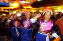 藏族大媽在香格里拉縣獨克宗古城歡跳“鍋莊”舞。本報記者:秦晴