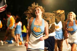 在旅游節的開幕式上,來自美國加州大學洛杉磯分校的啦啦隊上場表演。本報記者:鄭悅 攝 |
