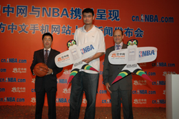 (圖為姚明出席NBA官方中文手機網站開通儀式。)