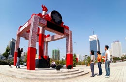 奧運火炬來遼倒計時紀念雕塑沈陽亮相