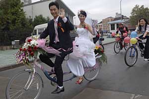 走路上班盡管健康,但也有很大的局限性——住的地方離單位不能很遠,否則難以堅持,對身體的消耗也太大。由此,騎自行車成為了另一種綠色出行方式。 趙先生是一名自行車的忠實愛好者。他告訴記者,從上大學到工作,他一直以自行車為主要交通工具,只要情況允許,他一般不選擇公交、地鐵、出租等交通方式。 而趙先生選擇自行車,并不完全因為方便,其實他本人還是一名環保志愿者!肮澞軠p排的重要意義大家都明白,可是很多人認為這和自己沒什么關系。其實,只要大家能盡量多地使用自行車這樣的綠色交通工具,就是在為環境、為后代做貢獻了!壁w先生說。 事實上,像趙先生這樣懷念自行車的人越來越多,如今,人們對自行車這種傳統交通方式的回歸已催生了一些新的行業。 記者在北京國華商場、牛街路口等地看到,上百輛顏色鮮艷且統一規格的自行車整齊地停在路邊。原來,這里開設了自行車租車點,行人只要辦一張會員IC卡,就可以以每小時五角錢的價格租到自行車,且可以在其他網點異地還車,電子計時扣費,非常方便。