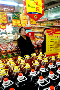 近日,受原料價格上漲因素影響,銀川市場各種品牌的食用油零售價格全線上浮,5升標準桶裝較一月前平均漲5至10元。據了解,由于菜籽油、大豆油較花生油、胡麻油而言漲幅相對較小,使一些以前習慣吃花生油、胡麻油的市民開始改買相對便宜的豆油、菜籽油。