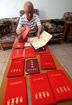 在貴州老年大學有一個非常特別的班級“99聲樂提高班”,這個班87名學生多半是1995年至1999年報名就讀的,可至今10多年過去,他們仍沒有畢業,因此也成為全校平均年齡最大的班級,班里曾有三位90多歲的學生,其中兩位今年剛剛去世,還有一位仍在堅持上課。 是什么力量讓這些老年人對學校生活如此眷戀,75歲的班長殷瓊珍說:“學校是我們大家的第二個家,只要學校允許,我們永遠也不想畢業,我們想在這里一直學下去!彼f,當時學校只有這一個聲樂班,很多喜歡唱歌的老年朋友陸續加入,大家在這里愉快地學習、愉快地歌唱,感情越來越深,以至于大家都舍不得分開。 87歲高齡的袁愈慧精神抖擻地坐在第一排,隨著音樂節拍放聲高歌“珠穆朗瑪”,她告訴記者,從1990年到老年大學學習,十幾年來學過書法、國畫、太極拳、中醫、聲樂等多門課程,“對我來說,每次上課都像過節一樣,一次課結束就盼著下一次上課”。袁愈慧的家距離學校有10多站路程之遠,“只要能起床行動,我絕不會耽誤一節課,”她告訴記者,老伴已經去世多年,孩子不在身邊,到學校學習,和朋友們交流是她最大的精神寄托。
