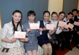 中國國際航空公司“300名奧運空乘”招募暨“奧運空乘新星”評選活動日前拉開帷幕。據介紹,此次“奧運空乘”招募主要是為2008年北京奧運會運輸提供服務。圖為參加國航“奧運空乘”招募的應聘者展示復試通知書。