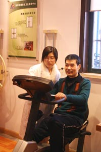 圖為上海市長寧區新華街道社區衛生服務中心醫生指導社區居民進行理療。