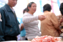 很多人吃過生魚生蝦,有誰吃過生豬肉?正在?谂e行的2007中國(海南)國際熱帶農產品冬季交易會上,一種吃酸奶長大的豬肉就可以生著吃,企業還現場煎肉,獨特的香味引起眾多客商和市民的好奇。