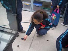 來自上海南洋模范初級中學八年級的34名學生,正分別透過每人桌上的體視解剖鏡的雙目鏡,觀察著載物臺上玻片內的昆蟲標本。昆蟲博物館科普部的兩名年輕老師,在通過PPT投影儀做昆蟲科普現場講解和輔導。 蟲子只有圓珠筆在紙上點個點那么大,在放大至30到45倍的鏡下,已有差不多蠶豆大小,細長的頭、胸、腹,頭上長長的一對觸角,三對胸足,還有兩對翅。個別的學生和臨桌同伴悄悄地說著什么。 有外骨骼(骨頭包肉)、六足、身體分成頭、胸、腹三部的昆蟲綱(屬于節肢動物門),是動物界中最大的一綱,也是無脊椎動物中惟一有翅的類群。世界超過100多萬種的已知動物里,昆蟲就占了2/3,而且分類學者還在不斷描述新種。昆蟲在地球上的歷史至少已經有3.5億年了,而人類的出現,距今只不過100萬年。 同學們此刻觀察的昆蟲叫薊馬,農林牧業的常見害蟲。 講解老師提問前排的一名女同學,你在鏡下看到了什么?該學生站起來略帶緊張地回答問題。當回答的語句略顯稚嫩、逗樂時,周圍的同學轟地笑了。 這是“上海市中小學利用科普教育基地拓展課程”中的一個場景。約30分鐘的觀察課結束時,博物館的常務副館長章偉年做了對觀察課的簡短總結:“……自然界中的昆蟲無處不在,80%的植物傳花授粉是依靠昆蟲的,沒有傳花授粉也沒有自然界的萬紫千紅,因此昆蟲就好比大自然網中的一個結。人與自然要和諧相處,也需要與昆蟲世界和諧相處。這正是我們今天這節課的目的! 同學們的下一站是離實驗室不遠的昆蟲溫室。推開溫室的玻璃門,恰好走在隊伍前排的好幾個女生都猛地收腳,驚訝地叫出聲來。 溫室門口小片空地上,一簇簇的蝴蝶靜立著!以黑白為基調的翅膀豎起,同時合閉或半合閉著,仔細看,翅上有彩色斑紋,其中一些帶著紫藍色金屬光澤。 溫室內有飼養著小昆蟲的花池,有三臺電腦調節的、安有玻璃窗的人工氣候箱,后者的作用是在不同溫度調節下的箱內展示昆蟲的不同變態階段,還有水生昆蟲和魚嬉戲在一起的水族器皿,另外還有幾個小型溫箱、玻璃缸。溫室剛對外開放時間不長,有些蟲子還沒有運到,但是溫箱、玻璃缸內灰黃顏色的大蛾子、在綠葉上或靜止或蠕動的家蠶、蟈蟈、蟋蟀、蝎子、土鱉等,還有好幾只在水缸里靈活游動的、身體比一元錢鋼镚略小的油黑顏色的龍虱等,已經足以讓這班少年大大開了眼。他們的嗓音自然蓋過了蟈蟈、蟋蟀的鳴叫。這是同學們在館內最開心的時刻。