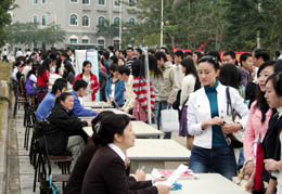 當日,海南省近年最大規模的高職高專畢業生專場招聘會在?诮洕殬I技術學院舉行。超過400家單位提供了4700多個工作崗位,參加招聘會的高職高專畢業生有7500多人。據了解,2008屆高職高專畢業生當前就業形勢良好,部分專業十分緊俏。