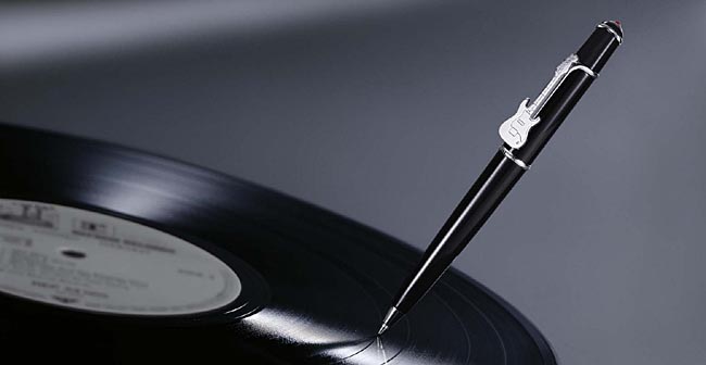 卡地亞以熱情的搖滾樂歡慶DIABOLO DECARTIER書寫筆10周歲生日。黑色復合材質制作的書寫筆,優雅的純黑流線型筆身,散發鉑金色澤的吉他造型筆帽,猶如聚光燈下萬眾矚目的巨星。