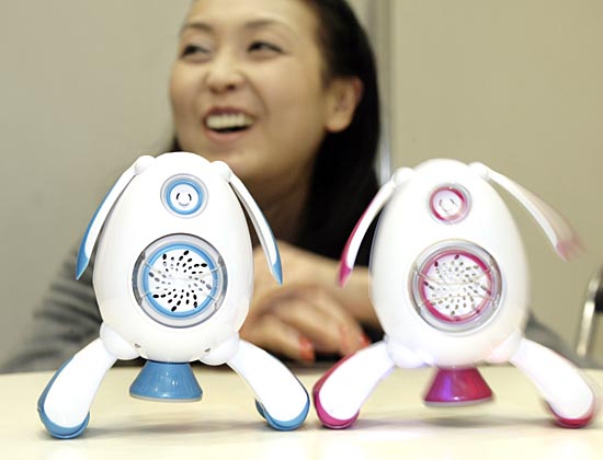 日前,在東京日本世嘉玩具公司舉行的媒體預展上,工作人員展示了該公司新推出的音樂寵物“i-spin”!癷-spin”可以連接到各種音樂播放器上,并對聲音做出例如行走、旋轉、扇耳朵等多種反應。