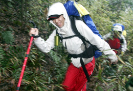 1月20日,參加“驢友節山地越野競技賽”的“驢友”在環西湖群山里跋涉。 1月19日至20日,來自上海、福建、河南、浙江等省市的40多家俱樂部的200余名戶外徒步旅行愛好者匯聚杭州,參加“2008首屆中國驢友節”的系列活動!绑H友”取自“旅游”的諧音,是圈內形容戶外運動者的專用詞。
