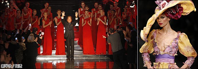 被譽為“紅地毯之王”的高級時裝大師瓦倫蒂諾·加拉瓦尼在不久前舉行的巴黎時裝周上舉辦了自己的告別時裝秀。各路明星、社會名流和時尚編輯云集現場,目送這位大師揮別統治近50年的時裝王朝。 告別時裝秀在羅丹博物館舉行。包括好萊塢明星烏瑪·瑟曼、格溫妮絲·帕特洛在內的許多重量級明星、名模到場,幾乎所有人都穿著瓦倫蒂諾設計的時裝。 現年75歲的瓦倫蒂諾去年夏天,即入行45周年時,便已宣布退休,但這次時裝秀才是他真正的告別。此前,瓦倫蒂諾曾說,他決心讓這場告別演出充滿歡樂的氣氛,盡管許多他的“粉絲”可能會忍不住傷心落淚。 “我不想搞怪,也不想太激動,”瓦倫蒂諾說,“我必須要快樂。我擁有一個完美的職業生涯,從不曾感到后悔! 瓦倫蒂諾在這場告別時裝秀上展現出大手筆,展示了75套服裝,幾乎是一場普通時裝秀展出服裝數的兩倍。 高潮出現在最后一刻,背景墻上投射出巨大的瓦倫蒂諾特有的紅色簽名,30名模特身著紅色禮服魚貫而出,動情的老人向觀眾們獻上飛吻,全場起立鼓掌。 瓦倫蒂諾1932年出生于意大利城市沃蓋拉,自幼便展露了出眾的藝術天賦。他上世紀60年代成立了以自己名字命名的公司,逐漸將瓦倫蒂諾塑造成一個具有自己風格的奢侈品牌。 在瓦倫蒂諾事業和生活中,幾十年來陪伴在他身邊的伴侶賈恩卡洛·加梅蒂功不可沒。加梅蒂數十年如一日幫助瓦倫蒂諾處理生意經營方面的事務,讓瓦倫蒂諾可以安心做一名設計師,自由發揮自己的設計理念。 總是以一身古銅肌膚亮相的瓦倫蒂諾本人過著富豪生活。瓦倫蒂諾擁有多處房產,包括巴黎附近的一座城堡。此外,瓦倫蒂諾還擁有一條約46米長的游艇,他的藝術收藏中不乏畢加索、米羅等大師的作品。 目前,瓦倫蒂諾品牌已被英國私人股本基金Permira收購,收購價格38億美元。 瓦倫蒂諾品牌最具代表性的就是它的標志性鮮紅色禮服和品位不凡的高級定制服裝。 從時裝界退休后,瓦倫蒂諾仍然閑不下來,接下來的幾個月排滿了各種計劃。 在2006年的電影《穿Prada的惡魔》中友情上鏡后,他還將出現在以自己為主角的紀錄片《瓦倫蒂諾:末代王朝》中。這部由《名利場》雜志特約記者馬特·蒂瑙爾隨行瓦倫蒂諾兩年多拍攝出的影片,也記錄了這次告別時裝秀的制作籌備過程。 從杰奎琳·肯尼迪到朱莉亞·羅伯茨,眾多女名人都親身展示過瓦倫蒂諾的時裝之美,許多時尚編輯對瓦倫蒂諾退出時尚舞臺感到依依不舍。 “一聽到瓦倫蒂諾這個詞,你腦中閃現的就是魅力,”美國《時尚芭莎》雜志主編格倫達·貝利說,“他了解女性希望在穿著上體現奢華的風格,雖然這點很明顯,但實際上很少有人能做到。我想,很多人會非常想念他! |