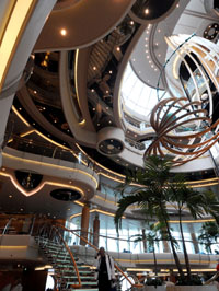 2月20日,美國皇家加勒比郵輪公司屬下的巴哈馬籍超大型豪華郵輪“海洋迎風”號駛抵中國熱帶濱海旅游城市三亞。圖為“海洋迎風”號郵輪的大堂。