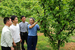 近年來,江西重點發展以“南橘北梨”為格局的果業基地。目前,全省果業種植規模達610萬畝,產量160萬噸,帶動了廣大農戶致富。圖為江西德安縣河東鄉后田村果業大戶張泗煌(右一)在給果農講解早熟梨的栽培技術。