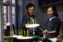 研究員在中國農業大學進行無土栽培試驗。 |