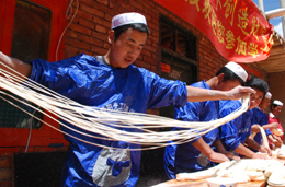 近年來,青海省化隆縣抓住回族特色餐飲,通過拉面匠培訓、政府貼息貸款、統一面館形象等措施,助力回族群眾走出了特色勞務輸出的致富路。目前,該縣回族群眾已在國內外開設了8000多家拉面館,年收入超過兩億元。