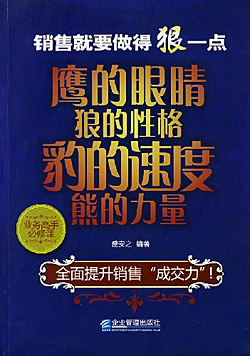 作者:盛安之 出版:企業管理出版社 銷售一定要狠一點。具備了鷹的眼睛、狼的性格、豹的速度和熊的力量的銷售高手一定很“狠”,他的銷售業績一定超群。 鷹的眼睛:銳利而準確。狼的性格:是在競爭激烈環境中生存的法寶。性格決定銷售業績。豹的速度:要逮住獵物,總是比常人先行一步。熊的力量:熊在進攻時,往往直擊要害,一招致命,因為熊具備超常的力量。完成銷售目標不是簡單的事情,要學會發力,給客戶和對手足夠的震撼,才能獲得訂單。 本書中這套方法為銷售人員提供了一份穿行于新領地當中的路線圖,并能收獲優異的表現與心靈上的滿足感。無論是銷售業界的前輩級人物,還是初涉銷售圈的新人,閱讀這本書,都會體驗到豁然開朗的感覺。 | |