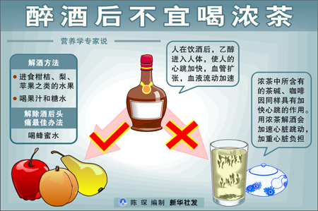 營養專家表示:醉酒后不宜喝濃茶[圖]