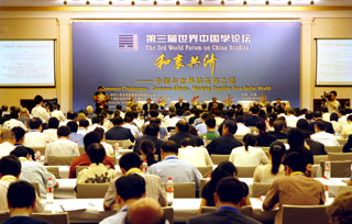 9月8日,第三屆世界中國學論壇在上海開幕。本屆論壇的主題為“和衷共濟:中國與世界的共存之道”。來自世界各地的中國問題專家和國內知名學者近400人參加論壇,就中國發展道路、中國宏觀經濟形勢、中國的能源可持續發展戰略及海峽兩岸關系等熱點話題展開探討。