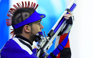 9月11日,英國選手馬特·斯克爾霍恩在比賽中。當日,在北京2008年殘奧會R3混合組10米氣步槍臥射--SH1決賽中,馬特·斯克爾霍恩以704.9環的總成績獲得冠軍。