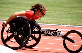 9月11日,加拿大選手米歇爾·史迪威在比賽中。當日,在國家體育場進行的北京2008年殘奧會女子200米T52級決賽中,史迪威以36秒18的成績奪冠。