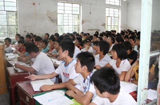 初三(6)班學生韓超杰說,“上課時大家都緊挨在一起,根本就不能動,下課了想上廁所都要擠半天才能出去! “我們班教室里連風扇都沒有,一到夏天就悶得不行,只能拿書本扇著風上課!睂W生詹竣婷說,“人實在是太多了,叫出每一個同學的名字都很困難! “我們班可能還不是人數最多的班級,老師也普遍反映工作量太大,為了讓學生聽清楚,老師們都拉大了嗓門講課!壁w從獻說,“在這種師生比例嚴重失調的情況下,教學質量很難保證!