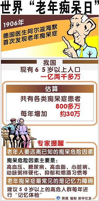 中華醫學會神經病學分會“癡呆與認知障礙學組”成員、武漢大學中南醫院神經科章軍建教授日前表示,多數老年癡呆未得到及時治療。 流行病學調查表明:癡呆癥出現的平均年齡為72歲,65歲的老年性癡呆患病率達3%至8%,80歲以上增加到30%或更高。 章教授說,由于對老年癡呆癥的認識不足,加上老年健康保健體系還不夠完善,目前我國癡呆患者的就診率較低。調查發現,輕度癡呆癥患者的就診率不到20%,其中半數以上被誤診,47%的癡呆癥老人照料者認為,病人的狀況是自然衰老的結果,是“老糊涂”了。 在近幾年的研究中,章教授發現兩個值得關注的現象:一是老年癡呆的患病年齡在提前,老年癡呆逐步呈現年輕化趨勢,不少四十多歲的中年人出現記憶力、思維能力明顯下降等老年癡呆的早期癥狀;二是由于生活環境和生活方式的巨大變化,高血壓、糖尿病和中風等血管損害所致的血管性癡呆的患病率明顯高于歐美國家。