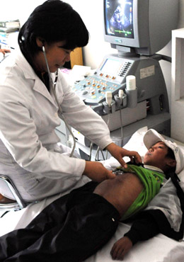 10月15日,北京安貞醫院和西藏自治區人民醫院醫學專家聯手對自2004年以來實施先天性心臟病手術的近百名兒童進行復診。這是自2004年以來,北京安貞醫院第七次派出小兒心臟病醫學專家參與西藏地區的先天性心臟病普查和治療。這次復診的近百名兒童都是近年來根據病情輕重分別在西藏自治區人民醫院和北京安貞醫院接受了免費治療的先天性心臟病患者。