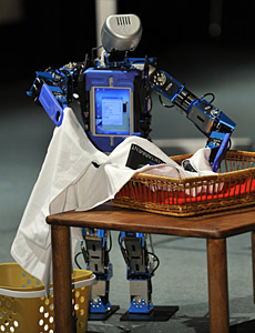 未來的家庭,人類生活更加便利。此次高交會展出了許多“服務型機器人”,它們會掃地、割草、清洗管道,還會陪孩子娛樂。最重要的是,不少家電企業都將機器人技術與日常生活用品相結合,研制出了老百姓能接受的“智能家電”,如:會自己走路、認路的“保潔機器人”,外表像一個普通吸塵器,但卻能自己設計路線,用最短的時間走遍房間每一個角落;具有自我調節功能的電冰箱,能根據主人開冰箱的頻率和次數控制溫度;還有能自己調味的微波爐;會炒菜、點菜的餐飲服務機器人…… 中國科學院深圳先進技術研究院院長助理畢亞雷告訴記者,機器人并不神秘,如果將傳感等技術運用在家電上,家電也能具備感知、判斷、執行等“機器人功能”,F在有客戶向該研究院提出要研發一款家用的“搬運機器人”,這個機器人懂得從冰箱里取出食物遞給主人。畢亞雷說,也許過不了多久,這個小型的“搬運機器人”就會走進千家萬戶。