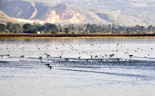前些年,寧夏固原市由于當地馬鈴薯淀粉加工業普遍向河道直排污水,一些地方的水環境迅速惡化。近年來政府部門痛下決心整治環境,今年又依法關停了1700多家小淀粉加工企業,沈家河水庫等部分過去污染嚴重的水域重現清流,吸引來大批水鳥棲息。圖為水質明顯改善后的沈農河水庫,野鴨成群浮游嬉戲。